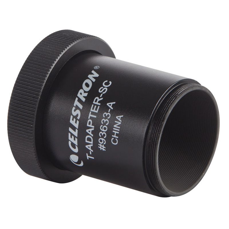 El adaptador T de Celestron para telescopios Schmidt-Cassegrain, le permite acoplar su cámara reflex a su telescopio, para trabajar a foco primario y realizar asi fotografías terrestres y de cortas exposiciones lunares y de planetas.
