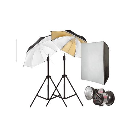 Este Kit de Iluminación Ultralyt para Estudio incluye dos Flashes Ultralyt Serie ULL-G con intensidad de 400 w/seg., con temperatura de color de 5500 K con potencia de salida y duración de Flash variable.