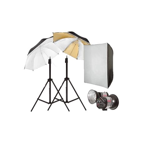 Este Kit de Iluminación Ultralyt para Estudio incluye dos Flashes Ultralyt Serie ULL-G con intensidad de 300 w/seg., con temperatura de color de 5500 K con potencia de salida y duración de Flash variable.