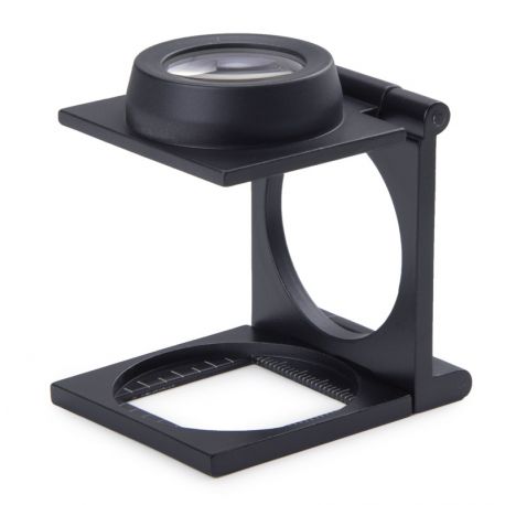 El modelo Euromex PB.5049 es el clásico "cuentahílos" metálico que se puede plegar cuando no se utiliza. Esta lupa posee un campo de visión de 25 x 25 mm con 6 aumentos. La escala de medida presente en a base es de 25 x 25 mm en pasos de 1 y 5 mm.