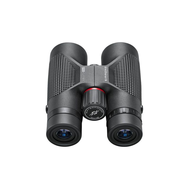Los nuevos prismáticos Simmons Pro Hunter ofrecen un sistema óptico totalmente de vidrio que proporciona imágenes nítidas en condiciones de poca luz con lentes completamente recubiertas y una construcción a prueba de agua, niebla y golpes, con certificación IPX7 que brinda tranquilidad en cualquier situación climatológica. Su diseño robusto y agresivo con zonas de agarre texturizadas los mantiene seguros en las manos. Los prismáticos Pro Hunter también cuentan con adaptador para trípode e incluyen un práctico estuche de transporte blando, correa para el cuello y paño para lentes incluidos.