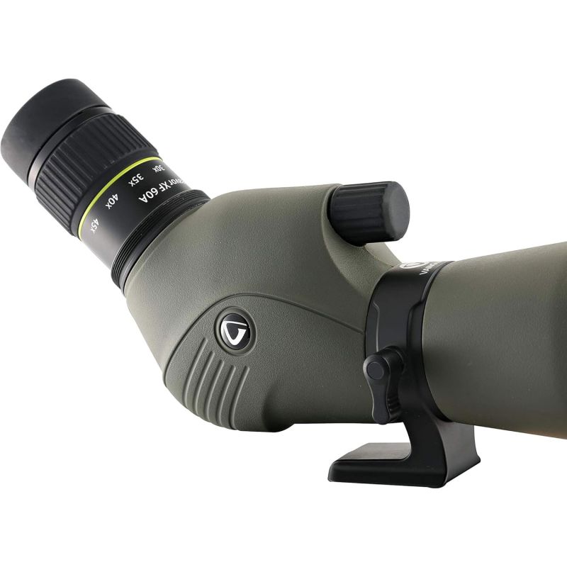El Endeavor XF está equipado con una gran rueda de enfoque suave para ajustes rápidos de enfoque. Este telescopio terrestre se puede montar en la zapata rápida de cualquier trípode e incluso hacerlo directamente sin necesidad de zapata en las rótulas y trípodes Vanguard Arca (así como otras marcas tipo Arca) que están equipados con la placa de montaje universal. La base del telescopio puede desplazarse para ofrecer ángulos de visión óptimos en una variedad de situaciones, como el tiro de banco y el uso con una rótula de ventana.